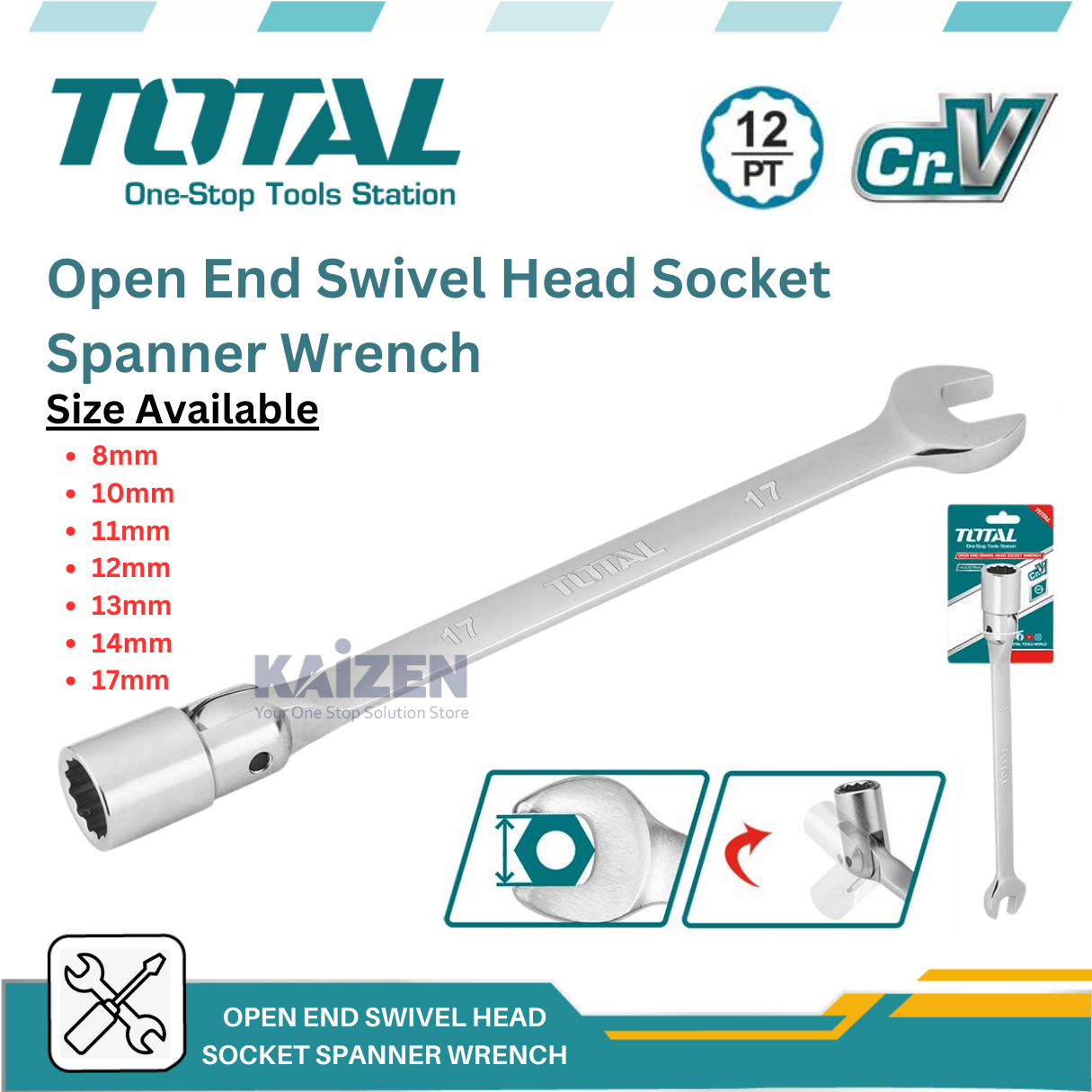 Product Item: Swivel open end clearance wrench